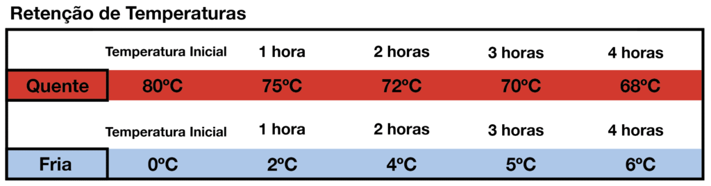 • Garantem a manutenção de temperaturas seguras para transportar, armazenar e servir alimentos por horas, sem o uso de eletricidade ou aquecedores.