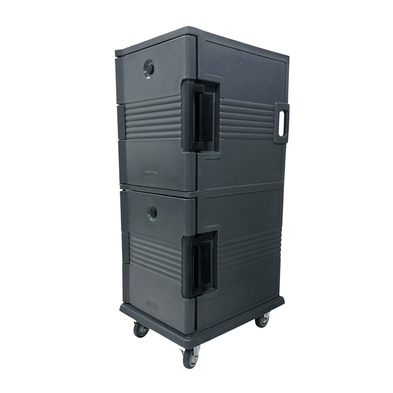 Caixa térmica profissional de maior capacidade, projetada para transporte e conservação de alimentos em cubas GN 1/1 com até 200 mm de profundidade.